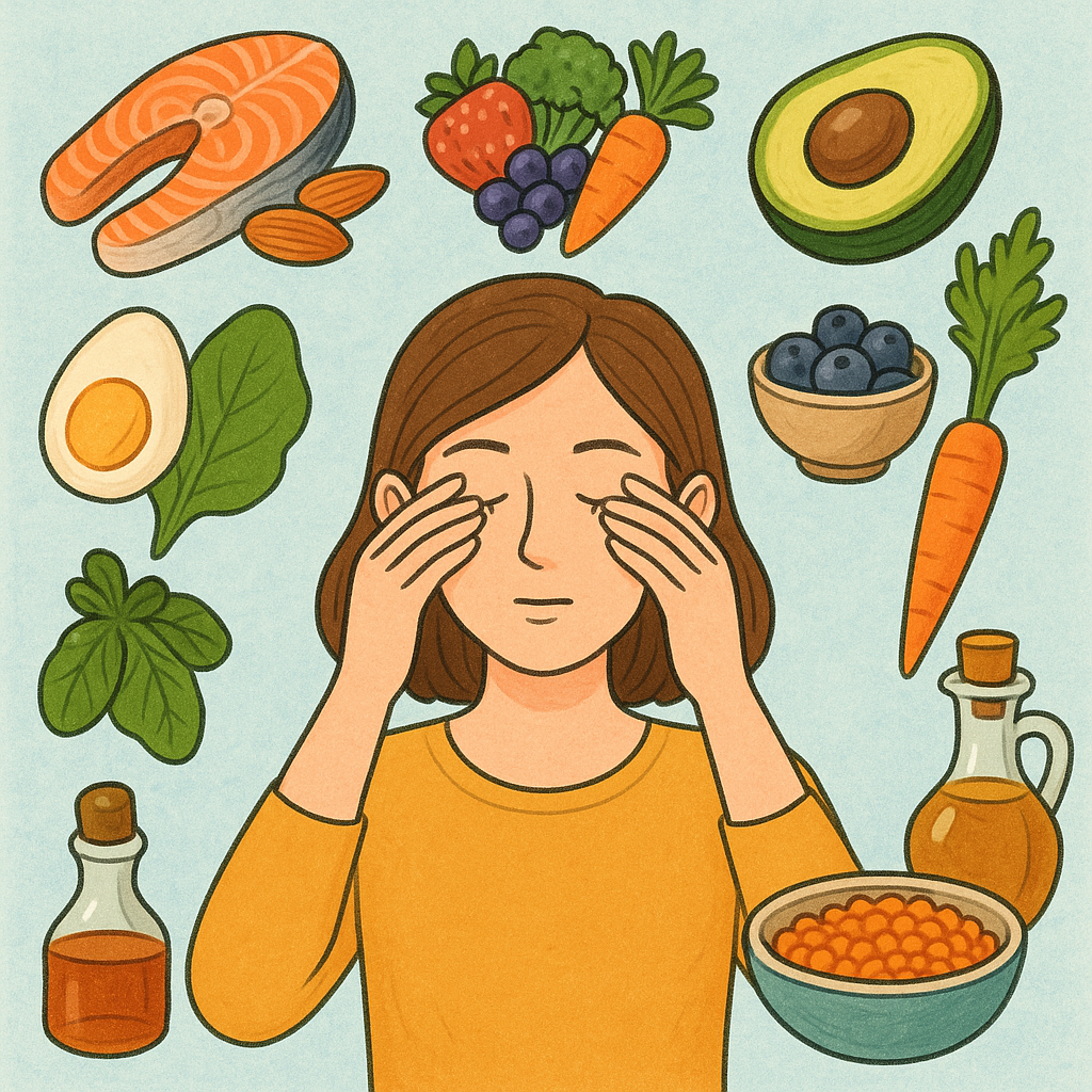 식사로 루테인·지아잔틴을 충분히 드시고, 햇빛이 강한 낮에는 선글라스로 눈 보호를 병행하세요.