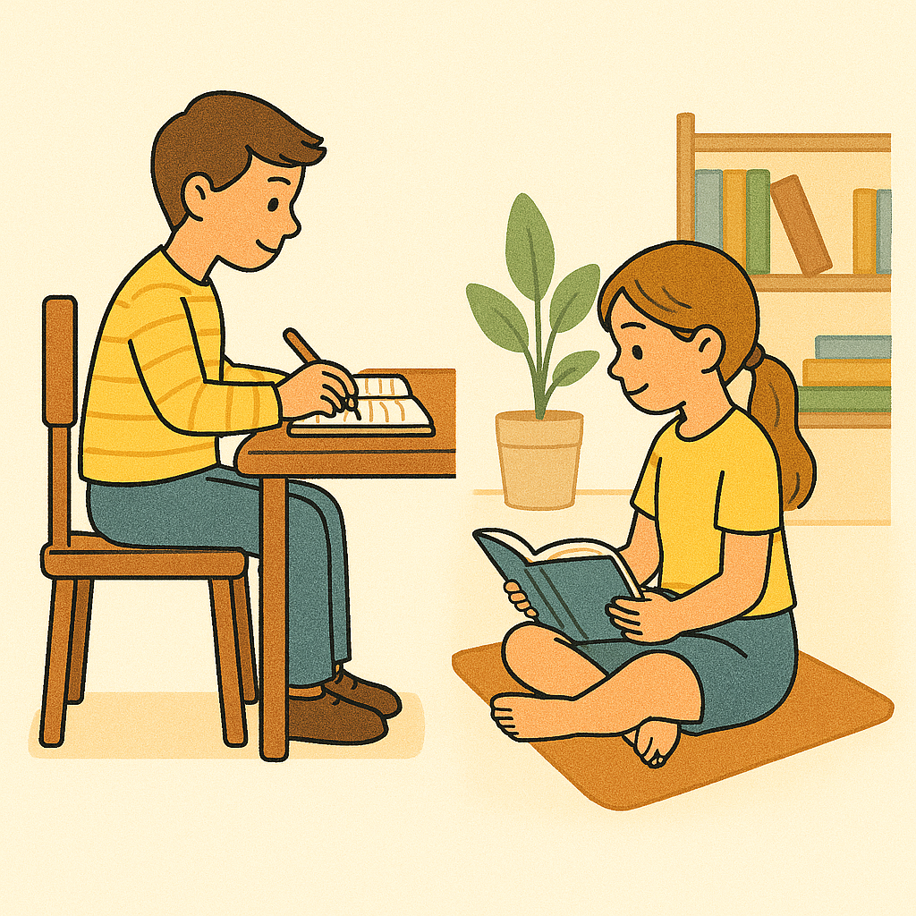 부모님이 함께 앉아서 책을 볼 때