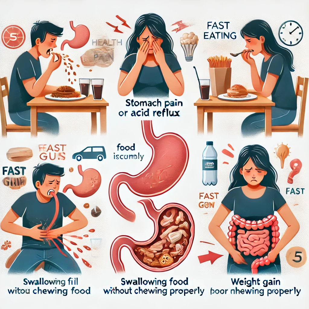 하지만 식사를 빨리하면 몸에 여러 가지 부정적인 영향을 줄 수 있어요.